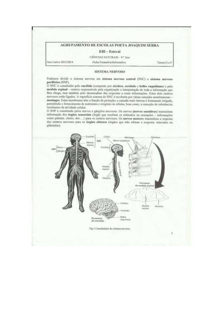Sistema Nervoso 6 Ano Exercicios EDUCA