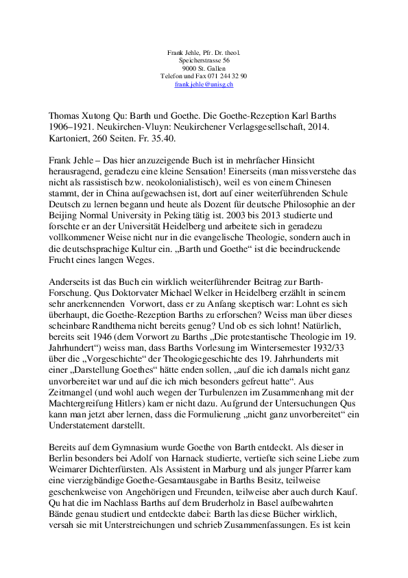 “Die Geister, die ich rief… Ein Chinese untersucht virtuos die Beziehung von Barth zu Goethe