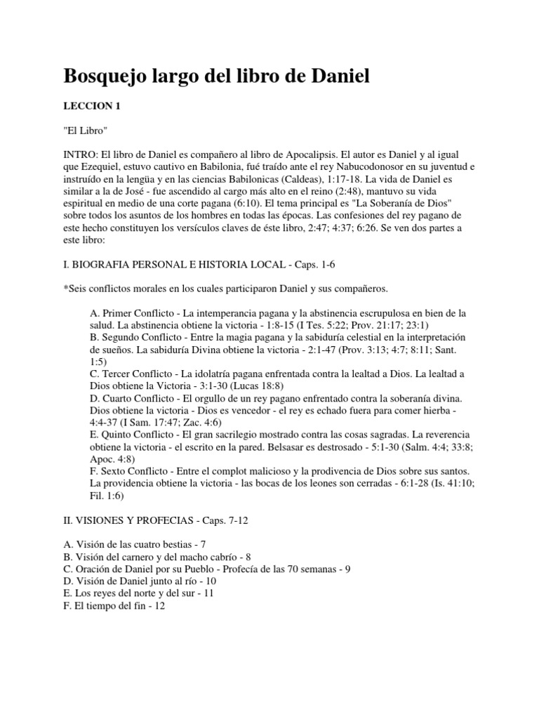 Bosquejo Largo Del Libro de Daniel PDF Daniel (figura bíblica) Libro de daniel