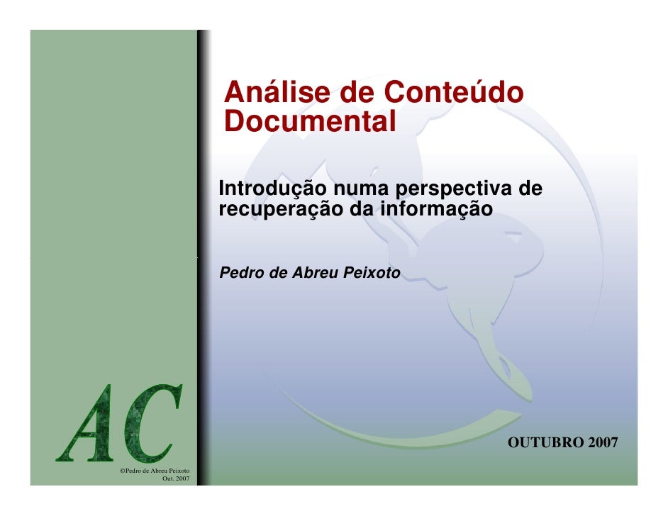 Este estudo investiga abordagem metodológica da análise documental em pesquisas qualitativas de fenômenos sociais. Trata-se de um estudo do campo da História da Educação cuja abordagem epistemológica é inspirada na perspectiva da História Cultural. Nesse sentido, a mobilização conceitual procura dar sentido e significar as fontes documentais tratadas pelos autores ao compor seus.. O procedimento de análise documental é aquele em que o pesquisador não participa diretamente da construção das informações e dos dados analisados no decorrer da pesquisa — excetuando-se o contexto da História Oral. Cabe ao procedimento de análise documental, entretanto, circunscrever o que será considerado documento e com que.